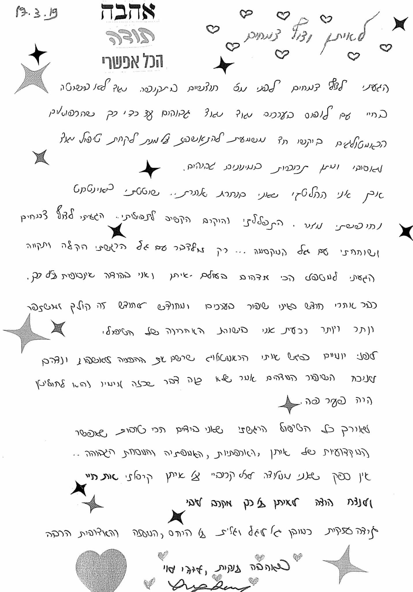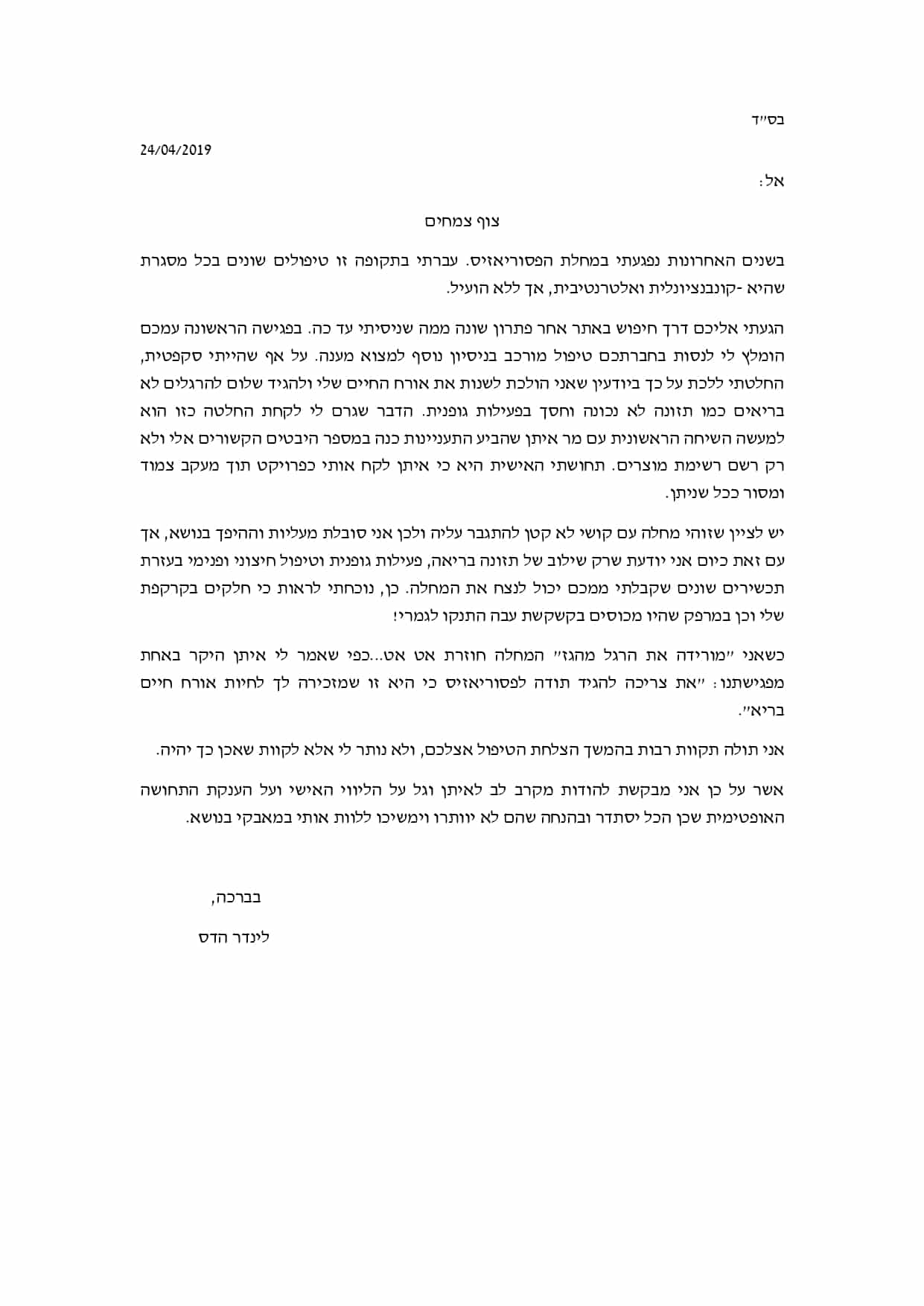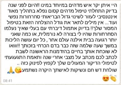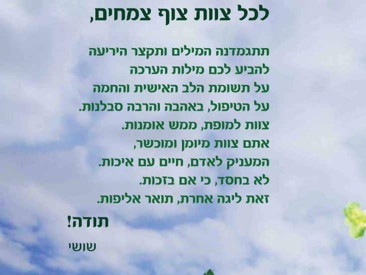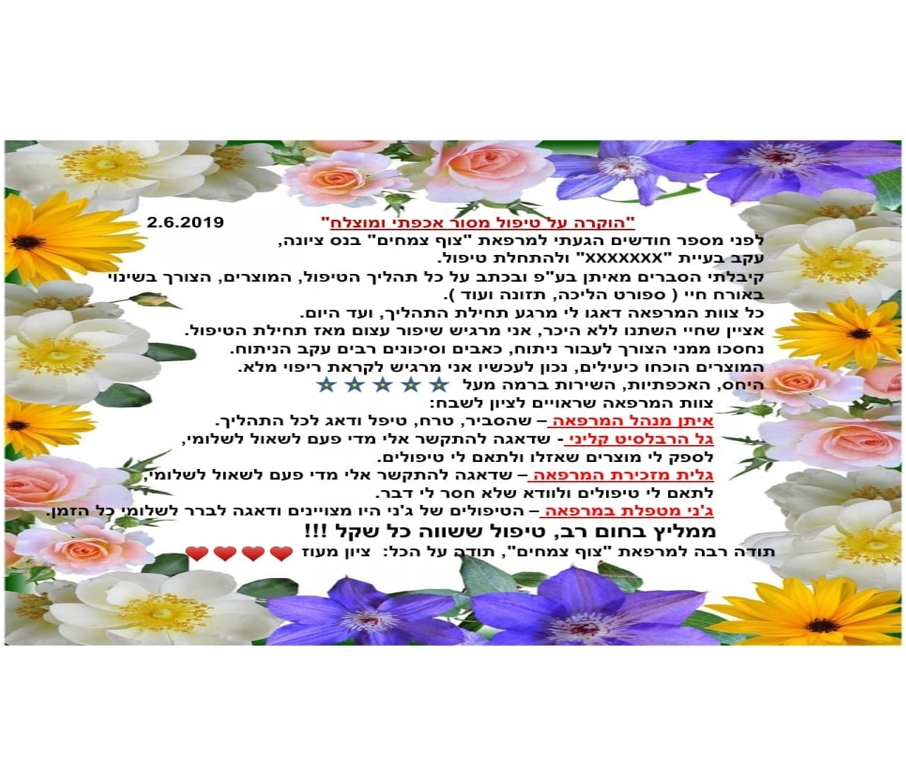 7.5.25 רוצה להגיד תודה ענקית ל’צוף צמחים” על טיפול שלא רק עזר לי פיזית, אלא ממש