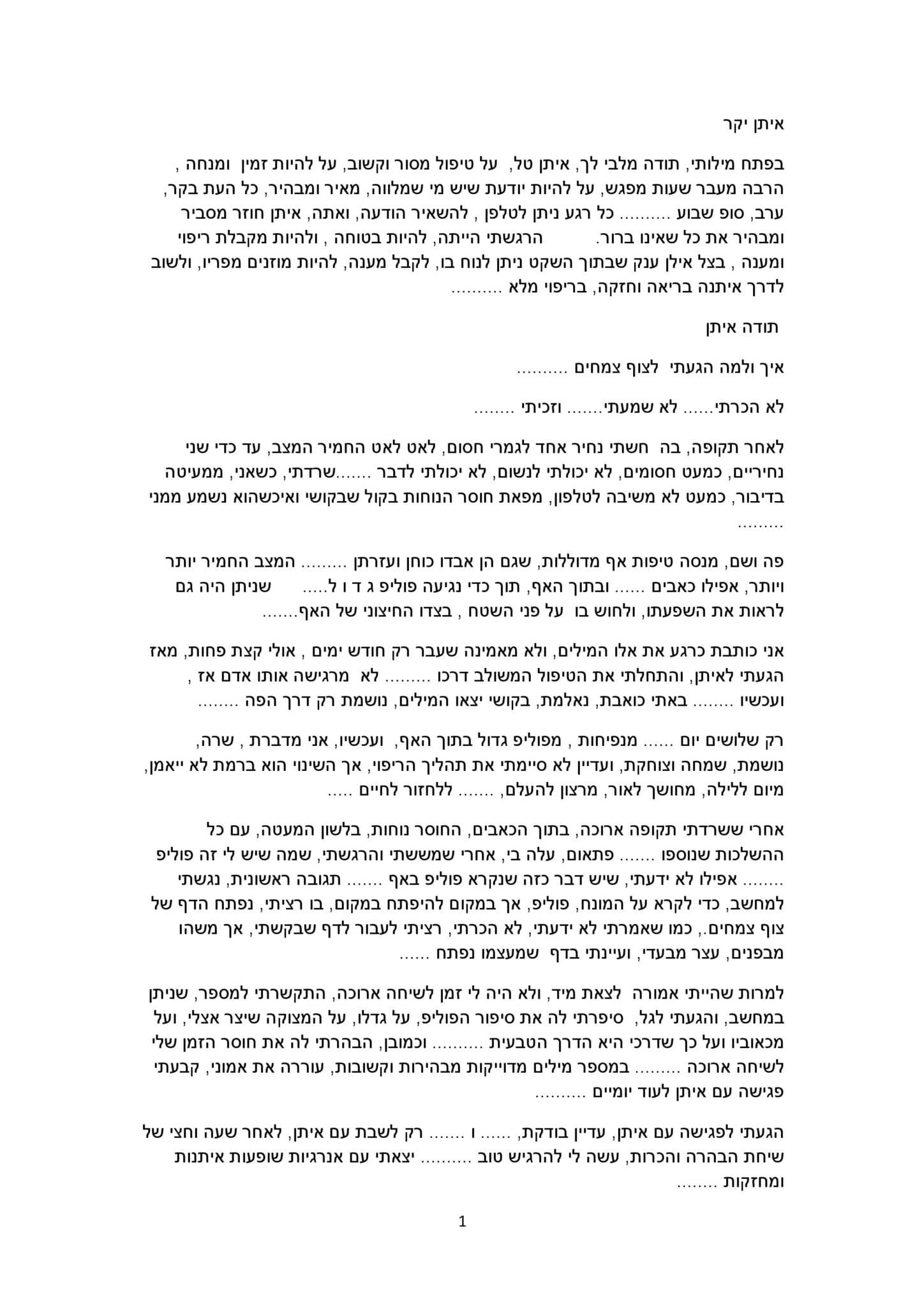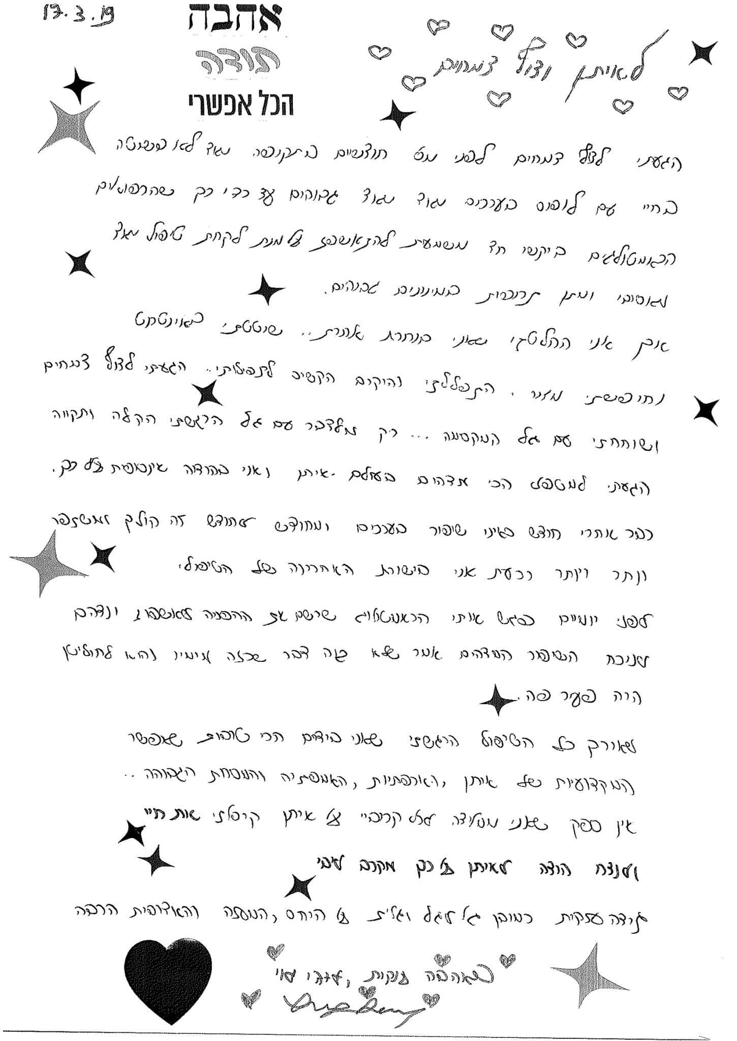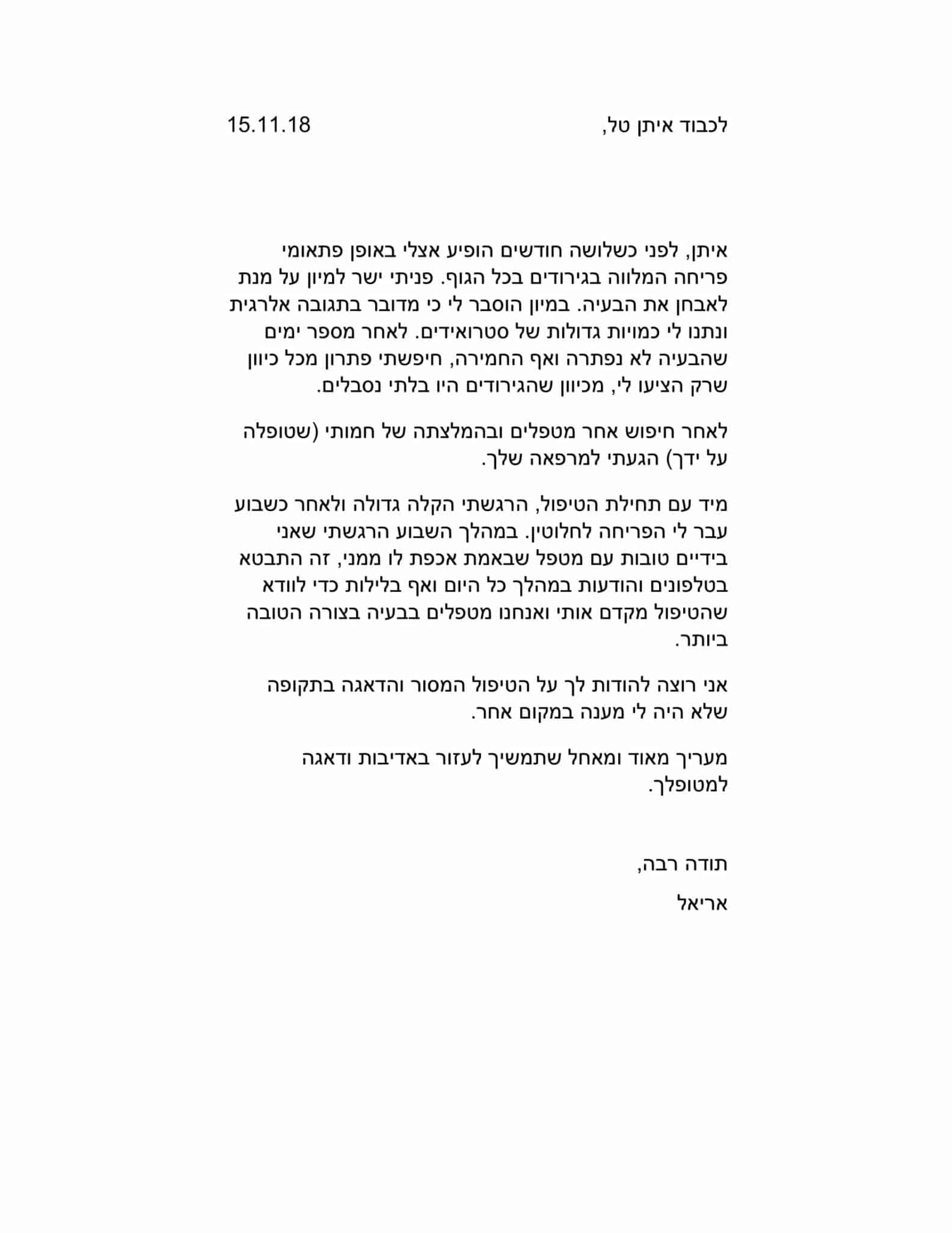 7.5.25 רוצה להגיד תודה ענקית ל’צוף צמחים” על טיפול שלא רק עזר לי פיזית, אלא ממש